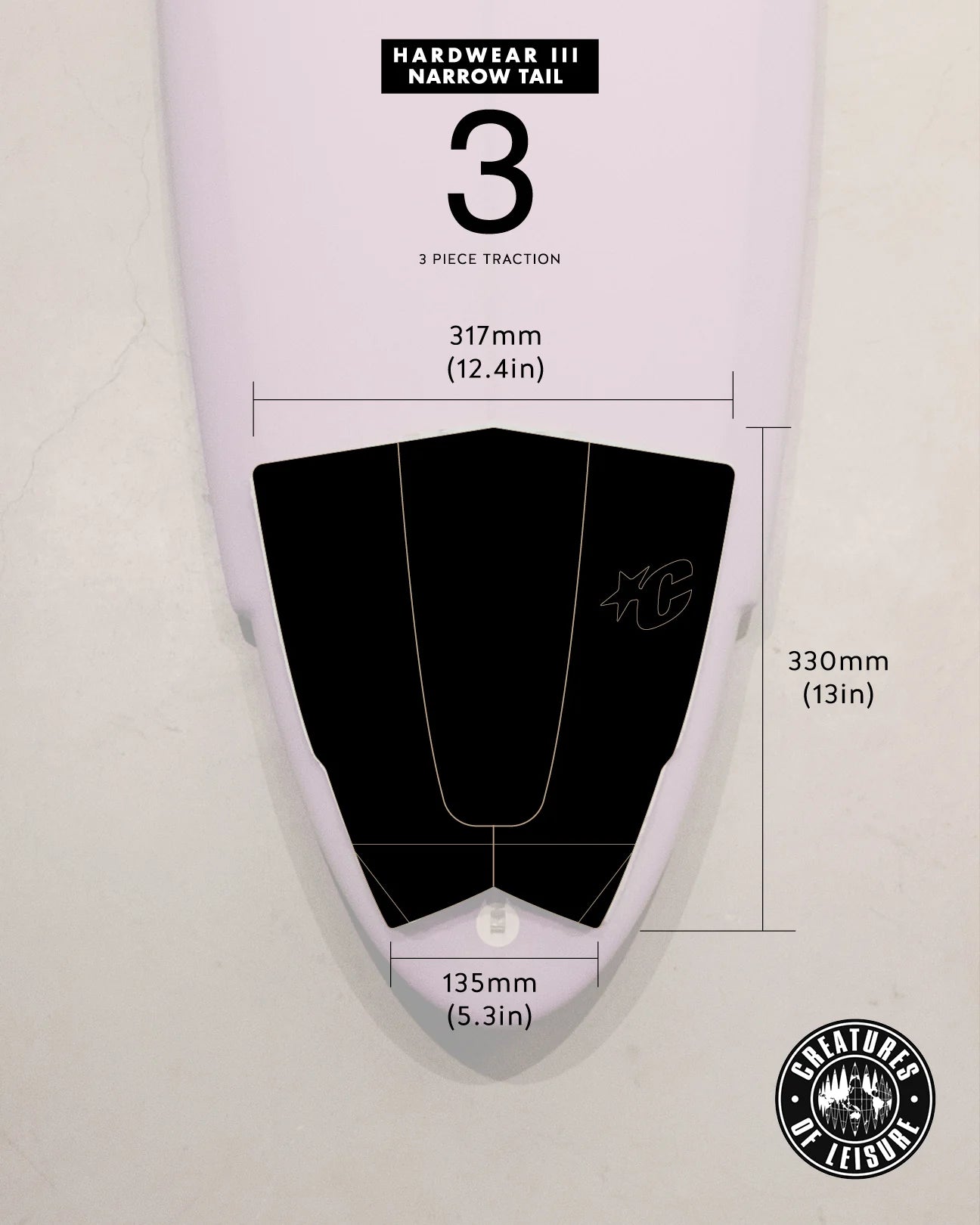 HARDWEAR III NARROW TAIL: designed for alternative crafts, from a narrow swallowed Flyer to a Twin Pin Tail. Created by Harrison Roach are four traction styles suited to his varied quiver. Discreet and understated, HardWear traction is built to blend in.
