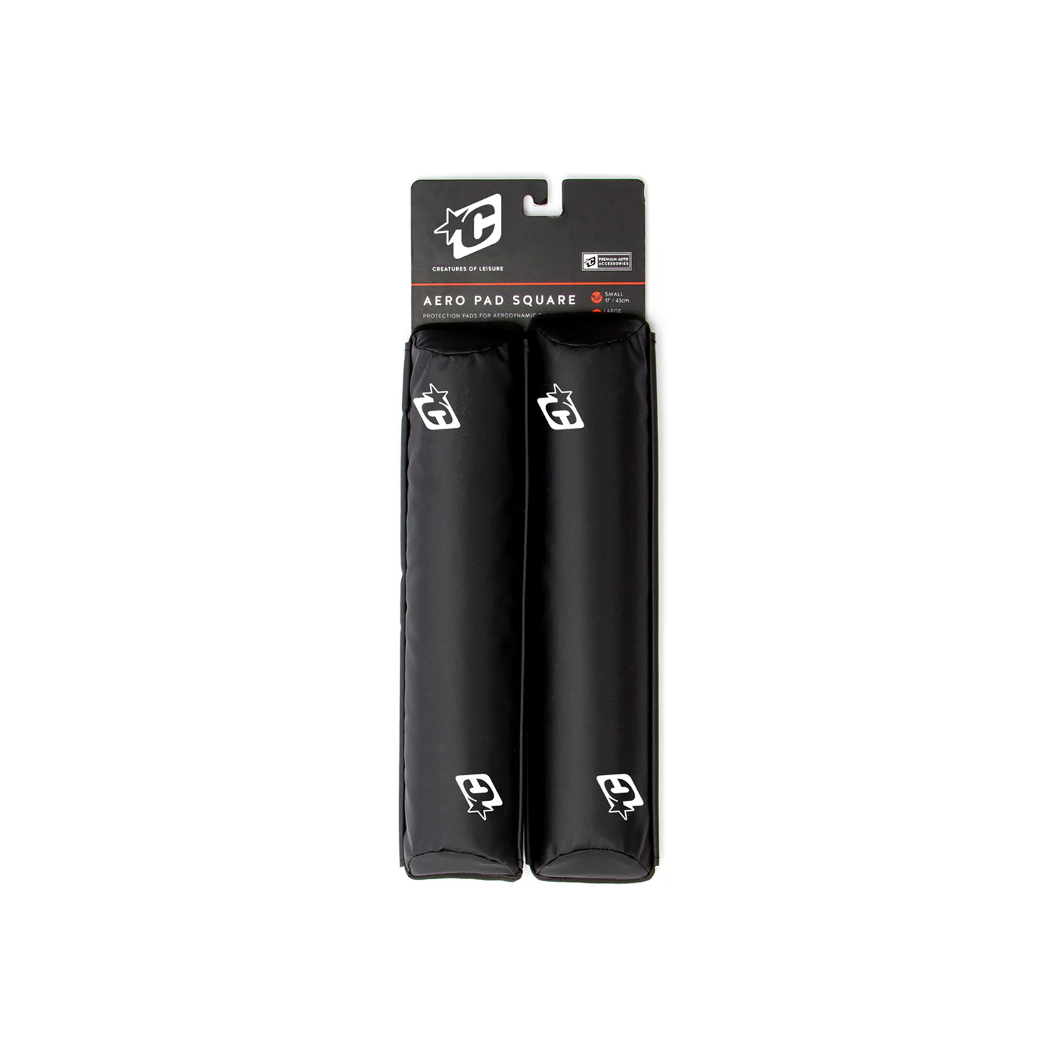 Board protection pads for aerodynamic roof racks. Durable cushioned pads that sit between the boards and roof racks for added protection.