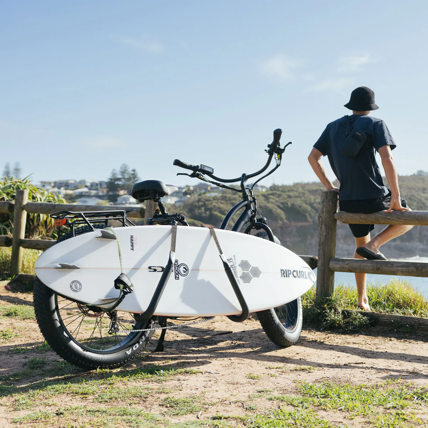 *Always ride within your abilities. Be aware of the extra width when riding with board and racks attached. Use more caution on windy days and always obey the road rules. Wear a helmet, it's the only head you have.
