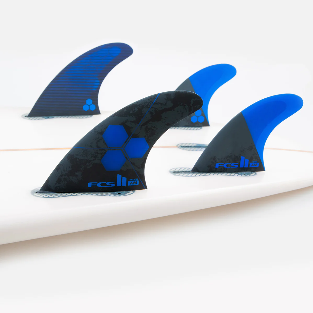Performance Core (PC) fins are made using a multi-layered resin transfer molding process. The flex pattern in PC fins extends progressively from the base through to the tip, helping the surfer to maintain drive and hold through a turn. This versatile fin material is light, and can be used in a variety of different conditions.