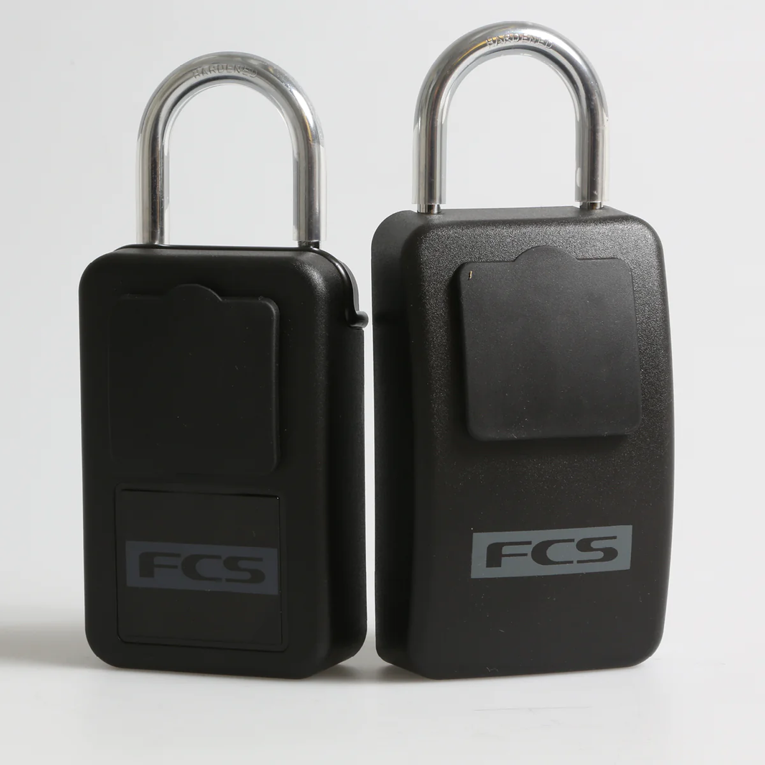 The FCS KeyLock is a weather protected combination lock that attaches to a number of points on your car. With up to 10000 combinations, it secures your keys or anything else you can fit inside so you can surf, swim or run freely.