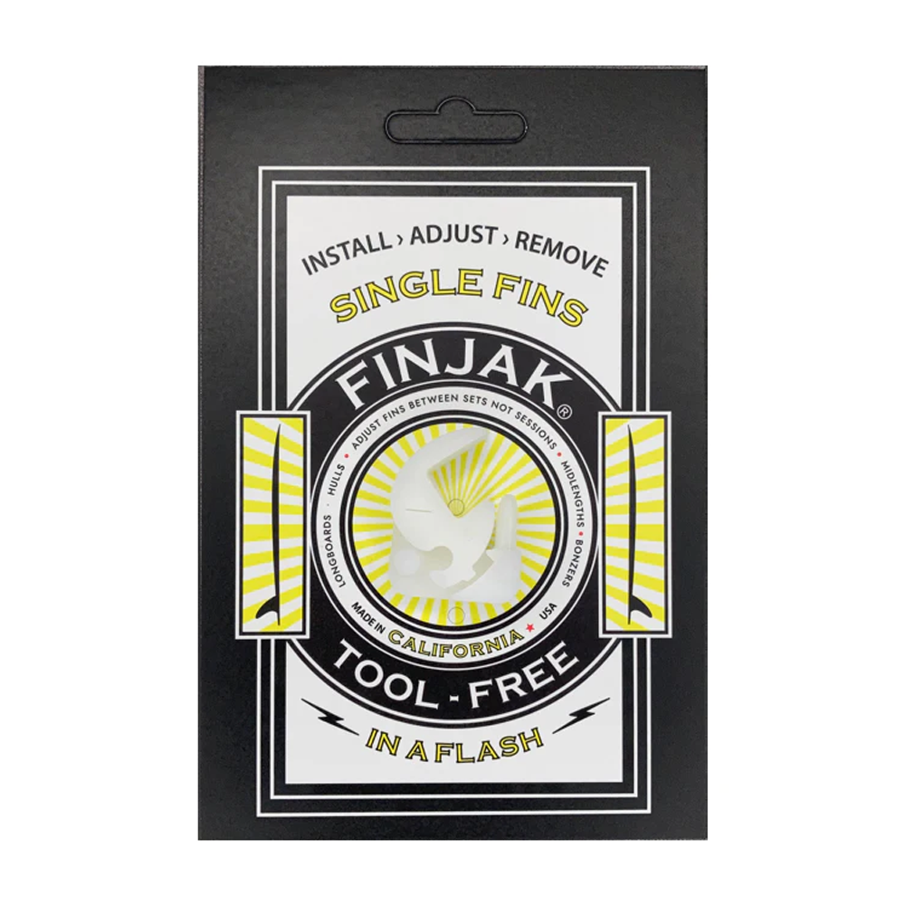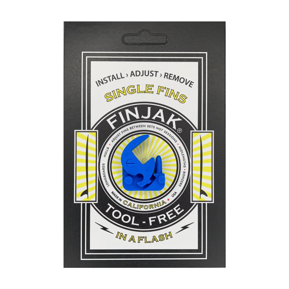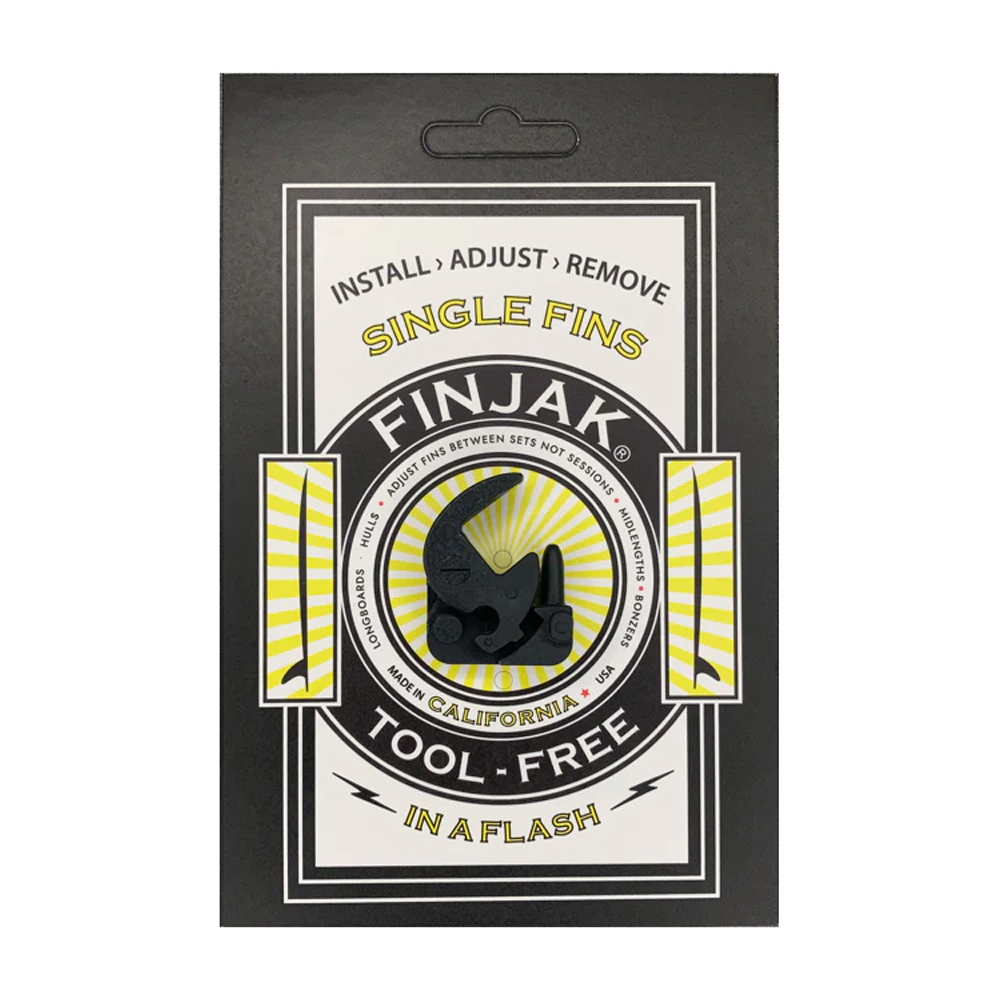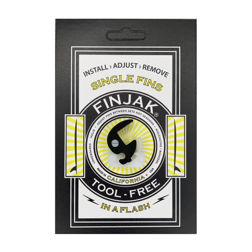 THE FINJAKTOOL-FREE SURFBOARD FIN INSTALLATION DEVICE REPLACES THE METAL PLATE AND SCREW OF YOUR SINGLE FIN LONGBOARD, MIDLENGTH, 2+1 SURFBOARD OR SUP AND ALLOWS INSTANT ADJUSTMENT BY HAND.