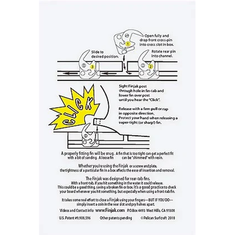 The FinjakTool-Free was intially designed with rear-tab fins in mind. For front-tabbed fins the FinjakTool-Free comes with an inherent safetly feature. If you hit something in the water it may release. This reduces impact damage to both fin and fin box and potentially expensive repairs to your surfboard. Should you hit something with your board or fin it's good practice to check the security of your fin regardless of using a front or rear tabbed fins.