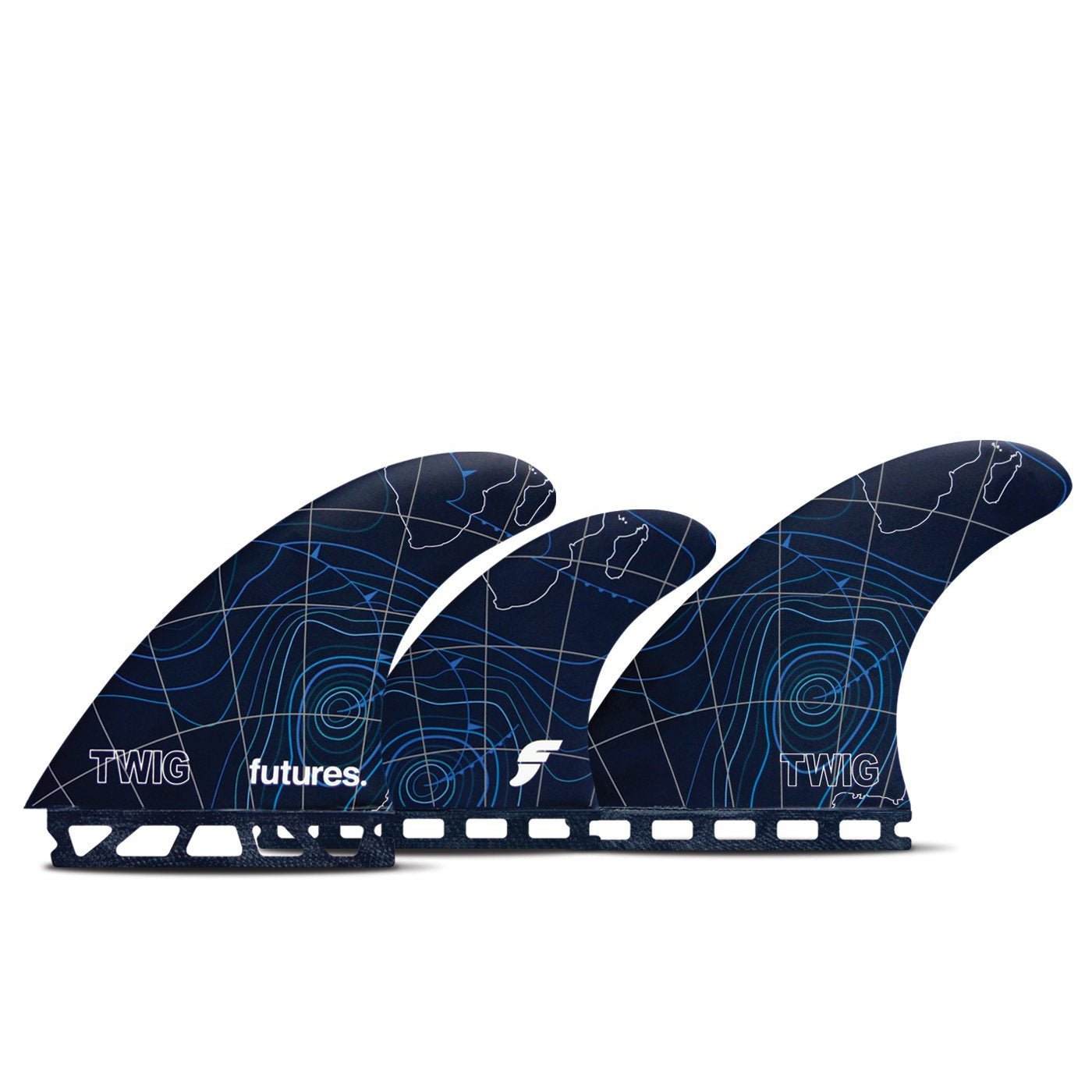 The Twiggy Fiberglass 5-Fin, designed by big wave world champion Grant "Twiggy" Baker, is in the Rake template category. Perfected over several years of research and development as a thruster initially, the quad rears were added in to create the ideal big wave package for those looking to charge. With a center fin slightly larger than the sides, the thruster is Twiggy's preference in XXL size surf. The quad option suits him more when it's barreling and down the line. Both sets feature high speed foils and solid fiberglass construction enabling surfers to have better control over their board while achieving peak speeds. The 5-fin set is designed to be ridden as either a Thruster or Quad set-up, packaged together for more versatility through your quiver.Â