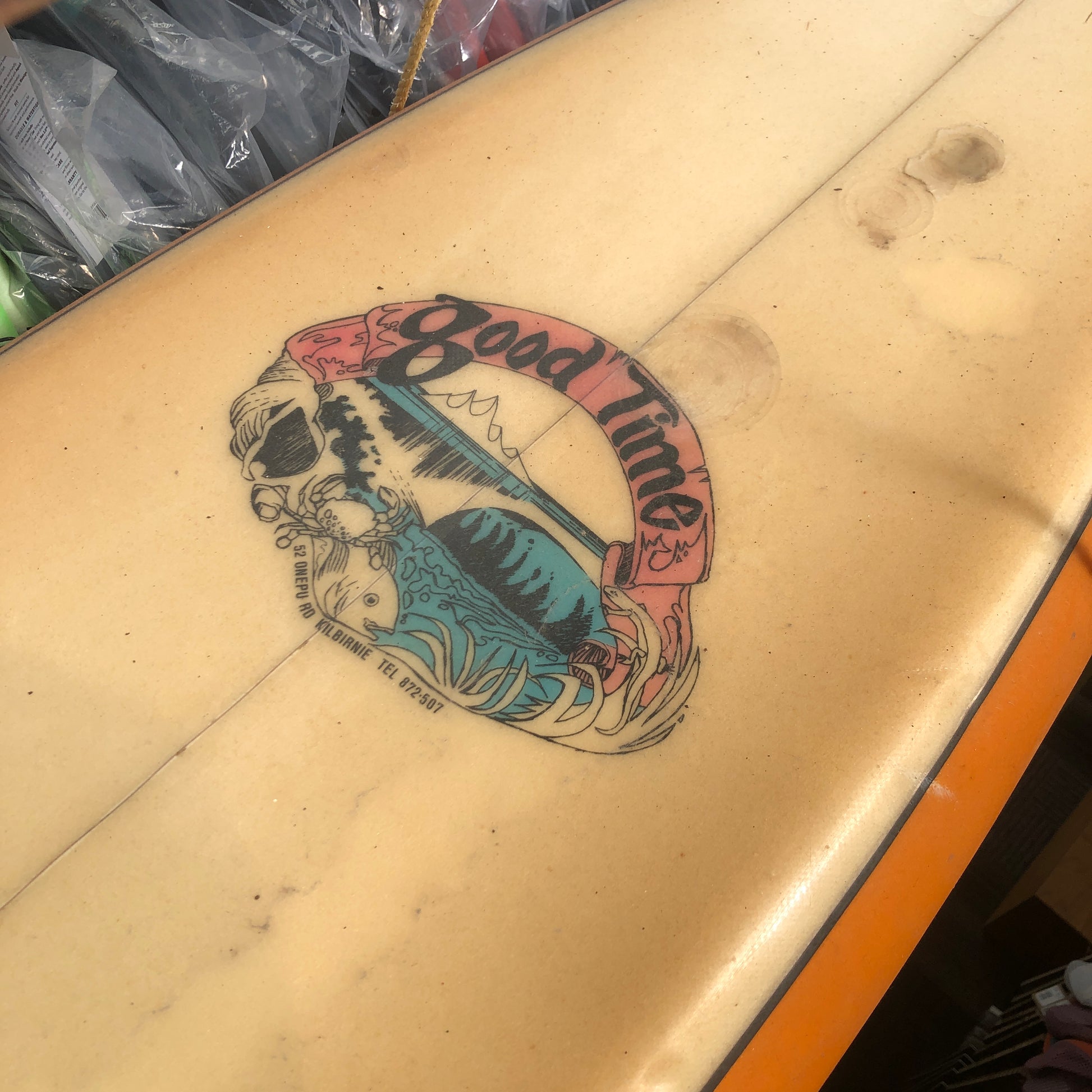 Roger Titcombe's OG Goodtime Surfboard logo from the 70s