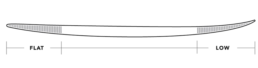 An overall low to flat rocker is well suited to create speed and glide in small to average conditions. |