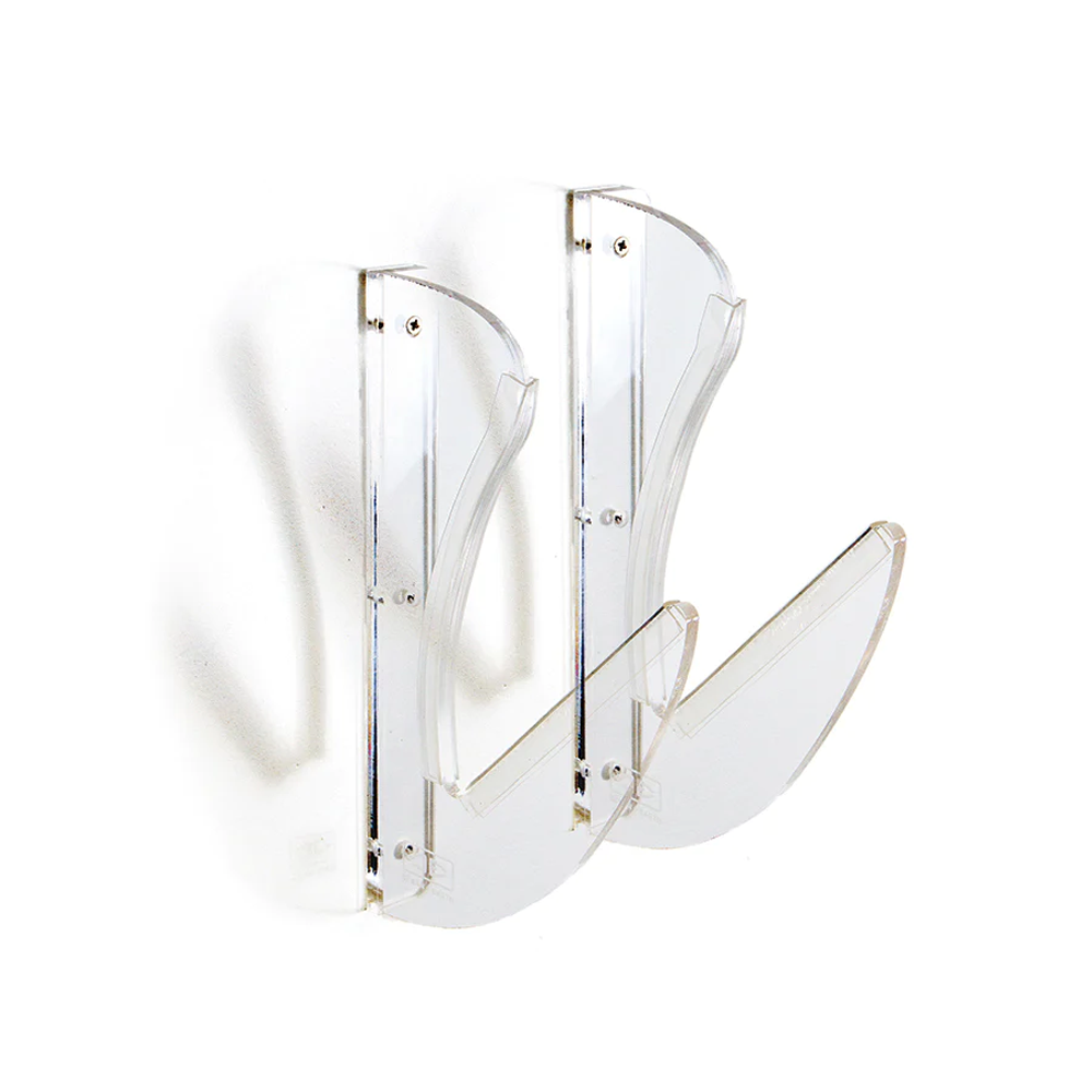Make your board a show piece in your house with the Invisible Wall Display Surfboard Rack. Made from polished invisible acrylic and supported by cushioned bumpers to keep your board scratch free, this horizontal surfboard rack will show case that prized stick with memories.