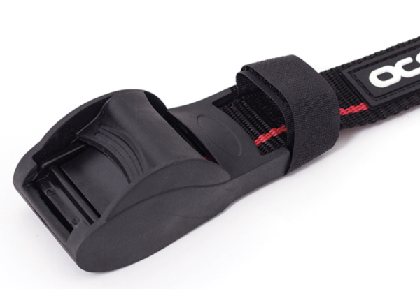 - Rustproof metal cam buckle locking system, with neoprene for added protection.