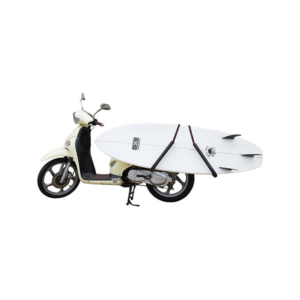 Looking to transport a surfboard on your scooter, moped or motorbike? The Moped surfboard rack is for you! Constructed from an anodised rust resistant aluminium frame with soft padded EVA foam to protect your board, this surfboard rack fits 1 board. Protect and transport your board in style with easy assembly.