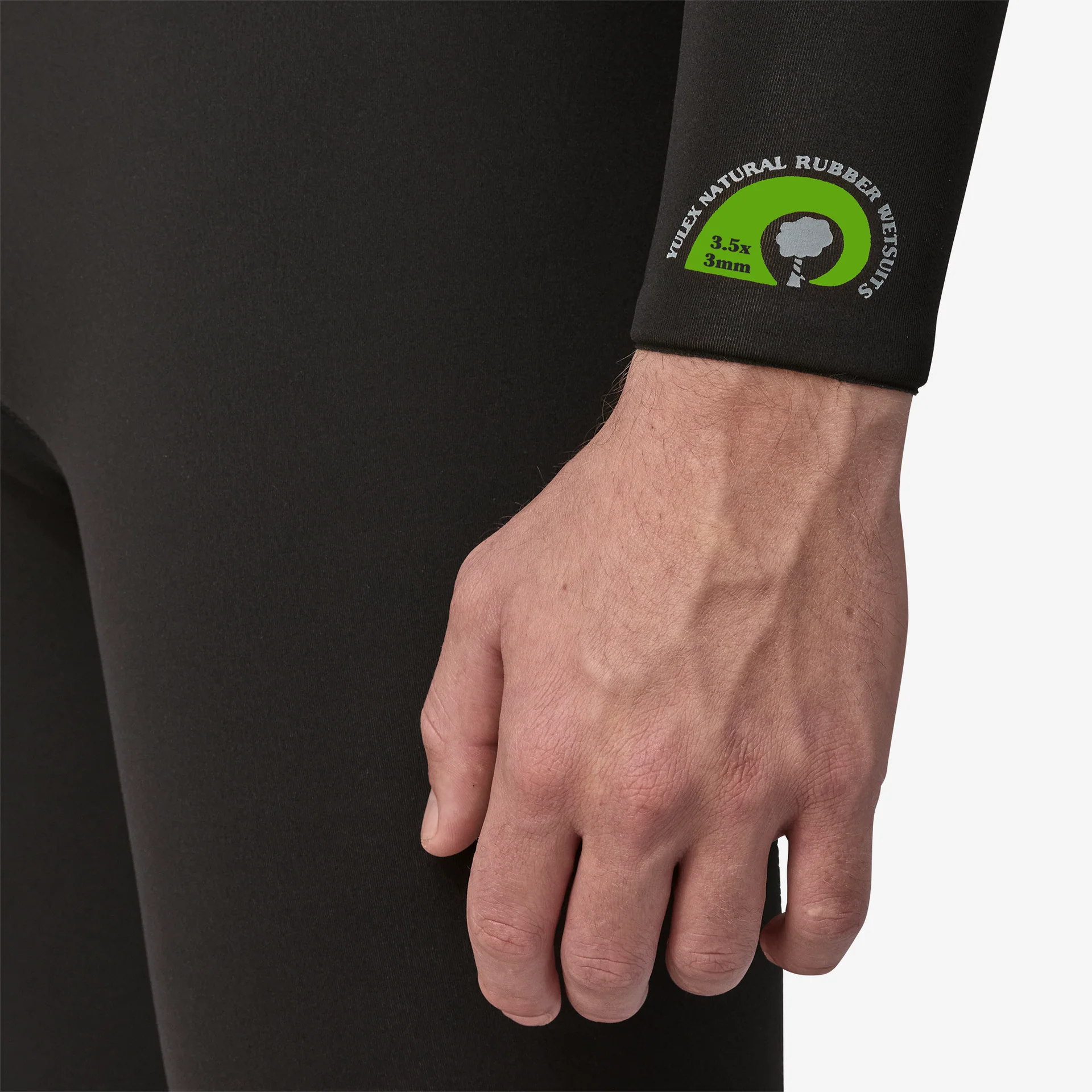 A high-performance, neoprene-free 3.5mm/3mm wetsuit made of 85% Yulex® natural rubber/15% synthetic rubber by polymer content with a recycled nylon lining; the natural rubber is from sources that are Forest Stewardship Council® certified by Preferred by Nature™. Suggested water temperatures: 55°–60° F/13°–16° C. Made in a Fair Trade Certified™ factory.