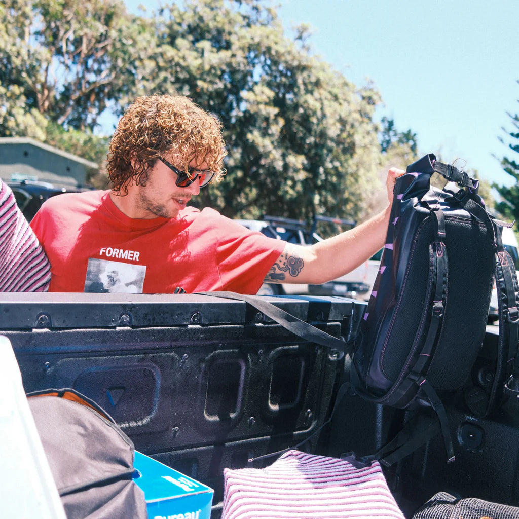 RAGE WET DRY BACKPACK is durable & waterproof. Comfort & versatility tested by the team on the road. It's uses are endless, you can put a wet wetty in there after a surf and you are going to keep dry, you can fill it with beers and ice if you want to go for a post surf mission or you can just use it as your regular daily backpack.