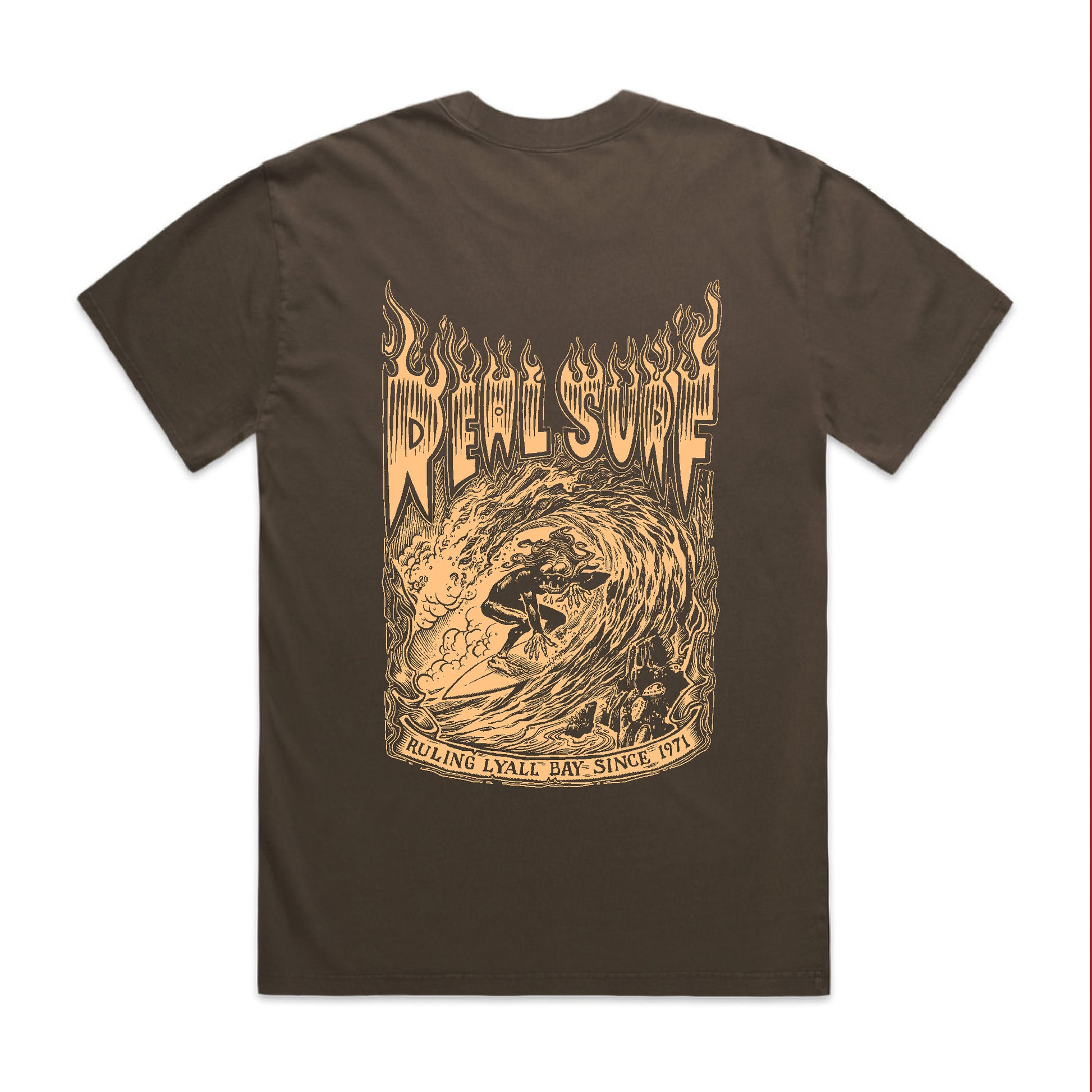 REAL SURF GOOFY FLAME HEAVY FADED TEE - BROWN