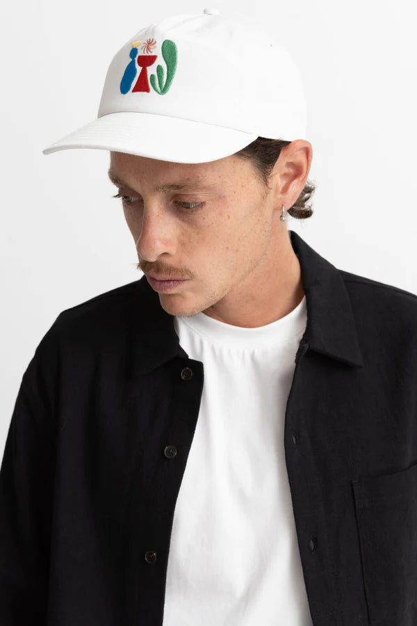The garden cap is a deconstructed and relaxed 5 panel cap with a vintage style cotton twill, contrast peak and mandala-inspired sun patch, made for everyday in the sun.