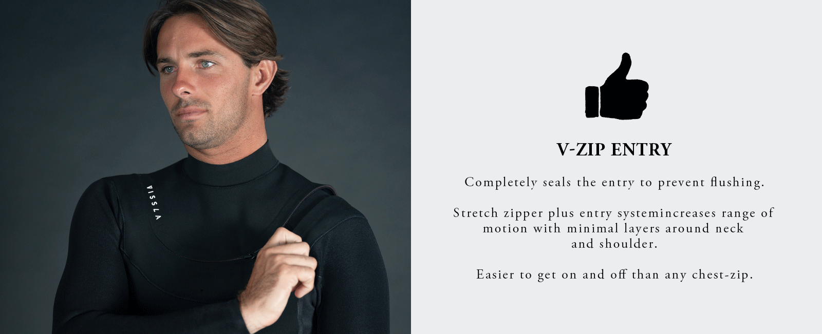 • Makes the suit easier to get on and off than any chest zip on the market.